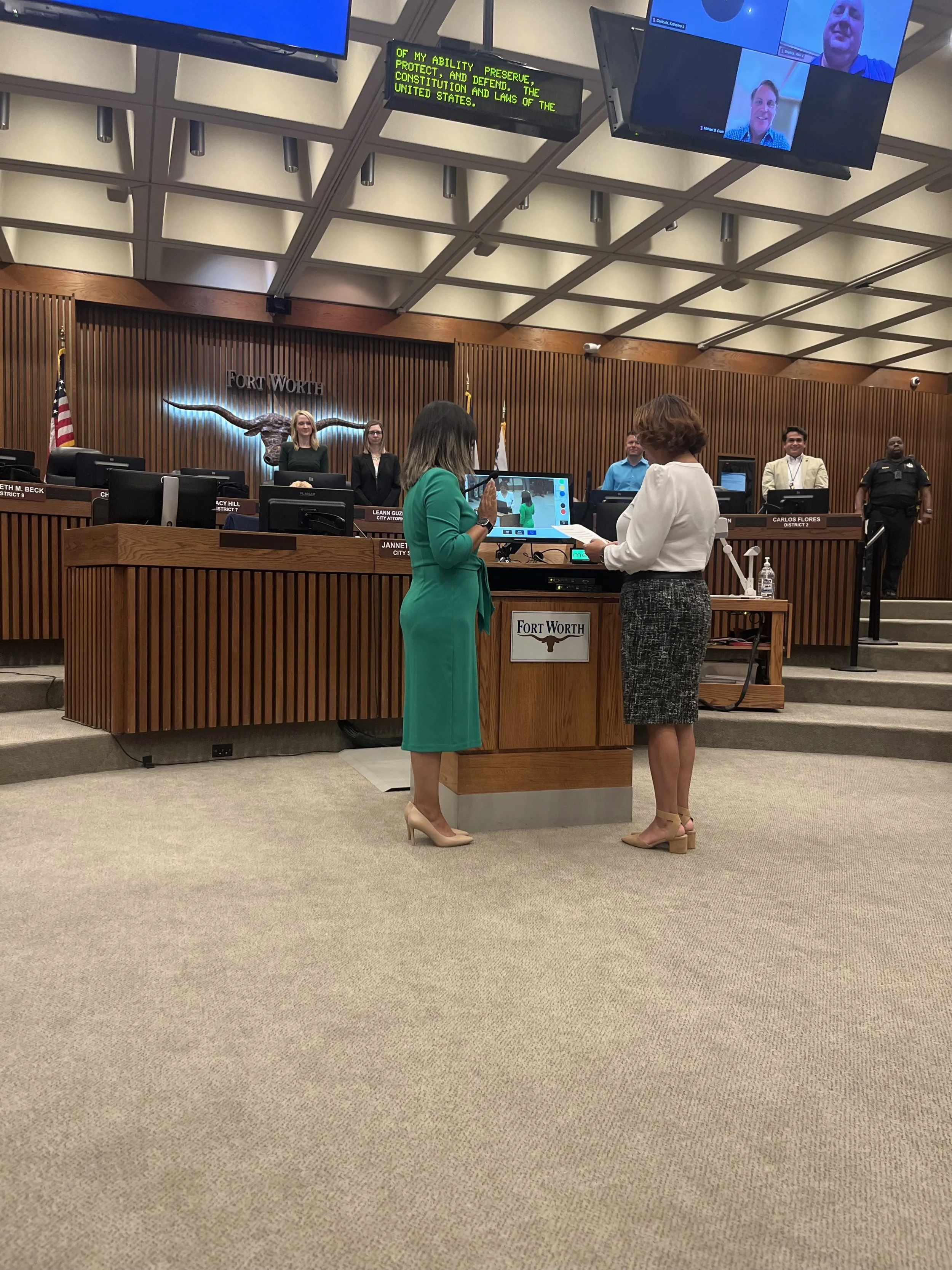 On Tuesday afternoon, June 20, Jeanette Martinez was sworn in as representative of the newly created City Council District 11 in Fort Worth at the city council chambers.
